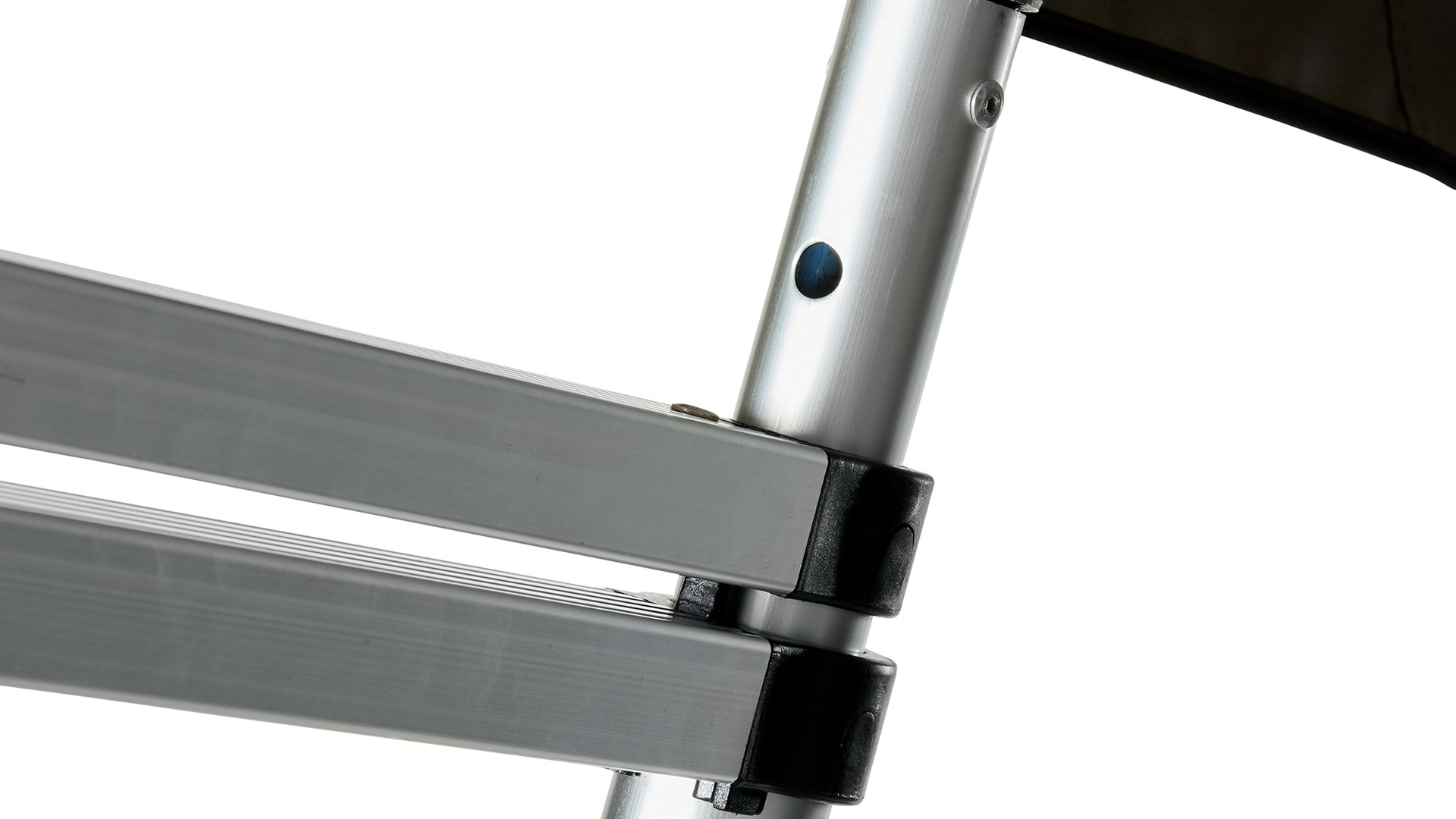 • drabina posiada punkty regulacji wysokości dla ułatwienia montażu oraz funkcję szybkiego automatycznego zamykania