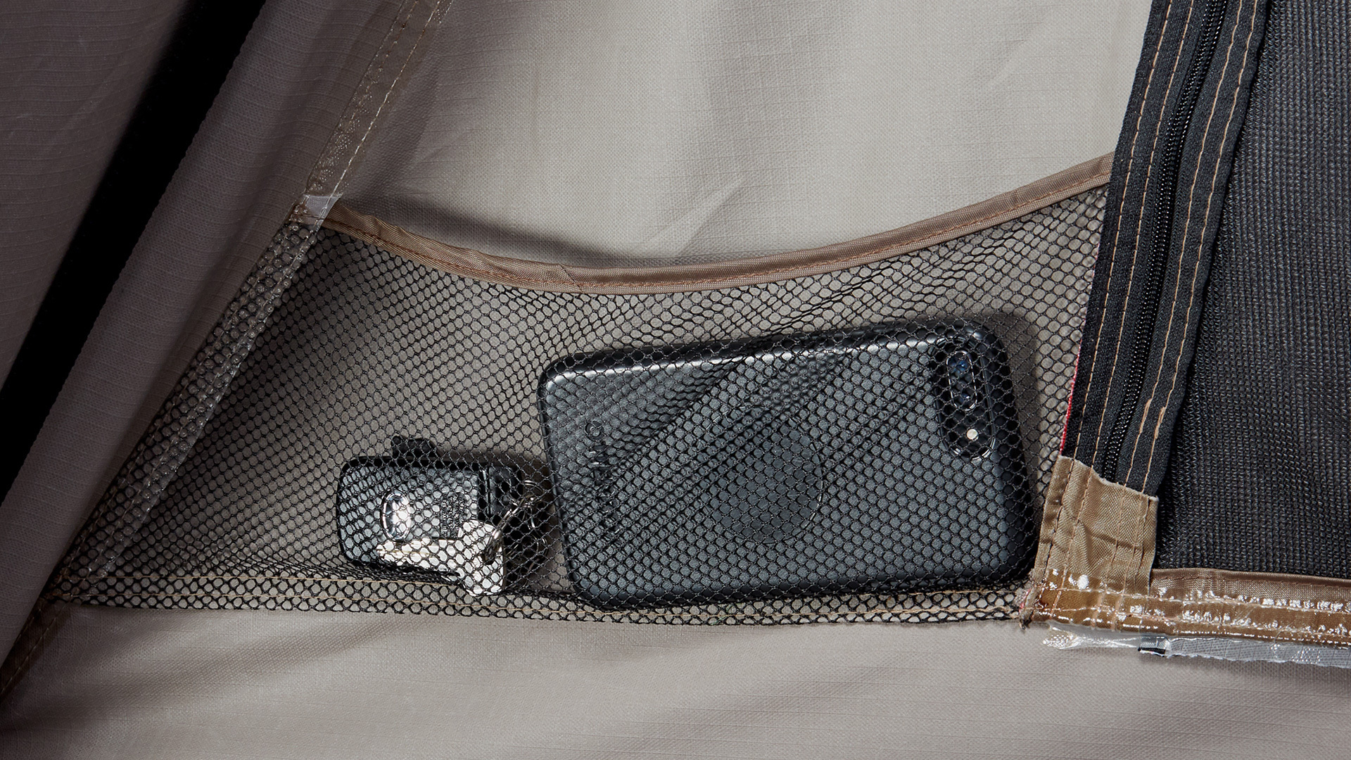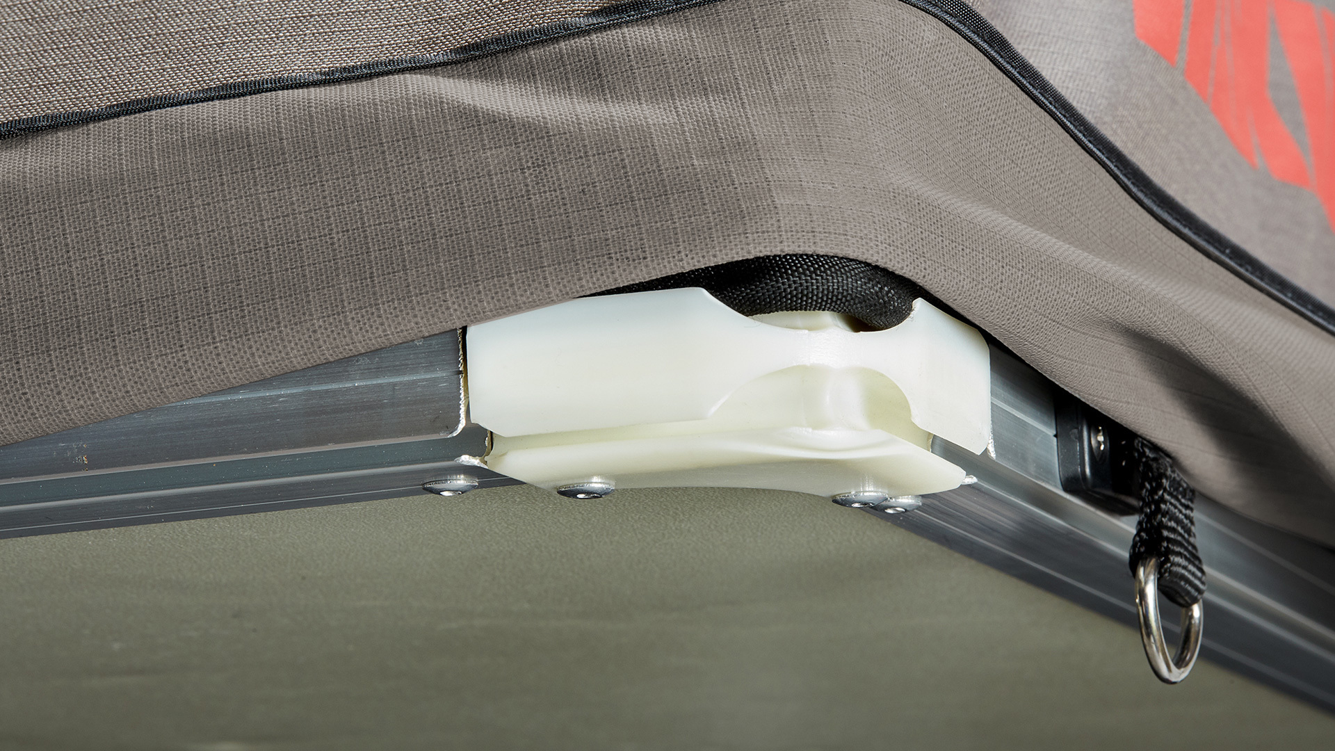 • odciągi oraz uchwyty D-Ring zamontowane w podłodze namiotu umożliwiają podwieszenie dodatkowego sprzętu, mogą również służyć jako dodatkowe zabezpieczenie podczas silnego wiatru