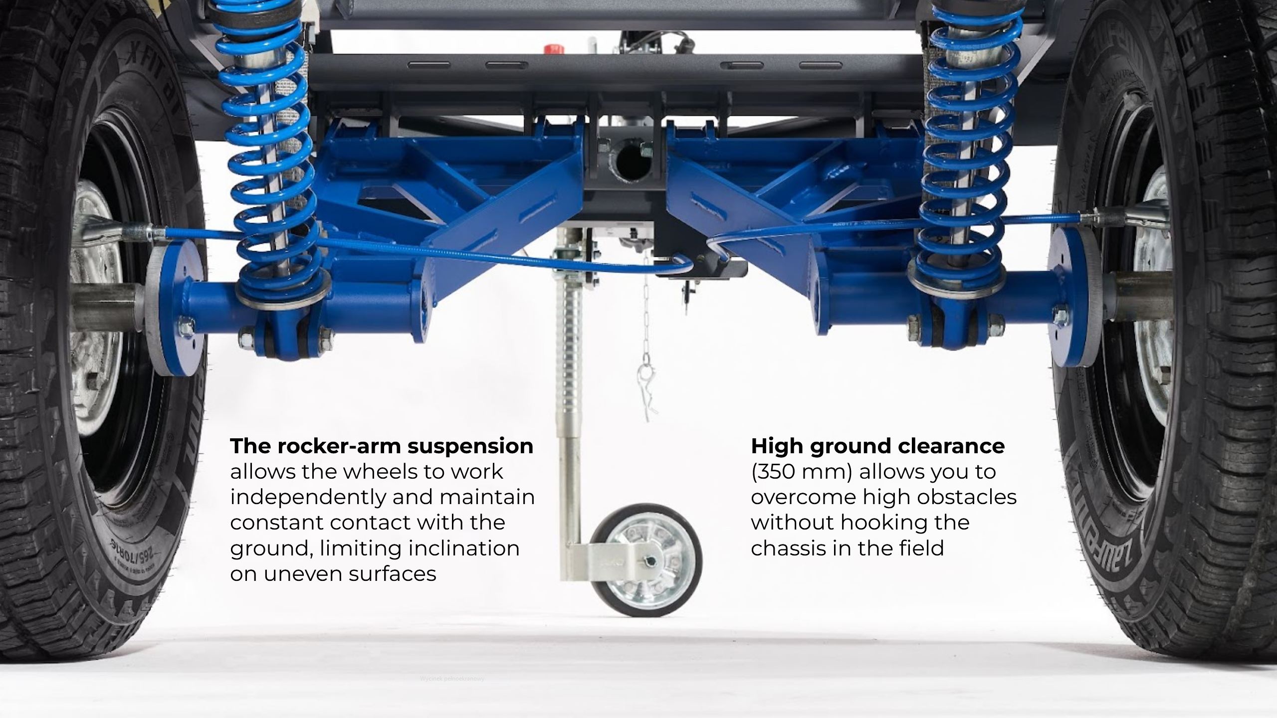 System stosowany w przyczepach o dopuszczalnej masie całkowitej 750kg, przeznaczony do jazdy sportowej, sprawdza się w szerokim zakresie obciążeń, zarówno na drogach szybkiego ruchu jak i w terenie. W każdym przypadku zwiększa bezpieczeństwo holownika i zabezpiecza ładunek w przyczepie. W cenie zawieszenia zapewniamy dobór sprężyn i wstępne ustawienie zakresu siły tłumienia amortyzatorów. System Testowany w trudnym górskim terenie przy obciążeniu około 1000kg
